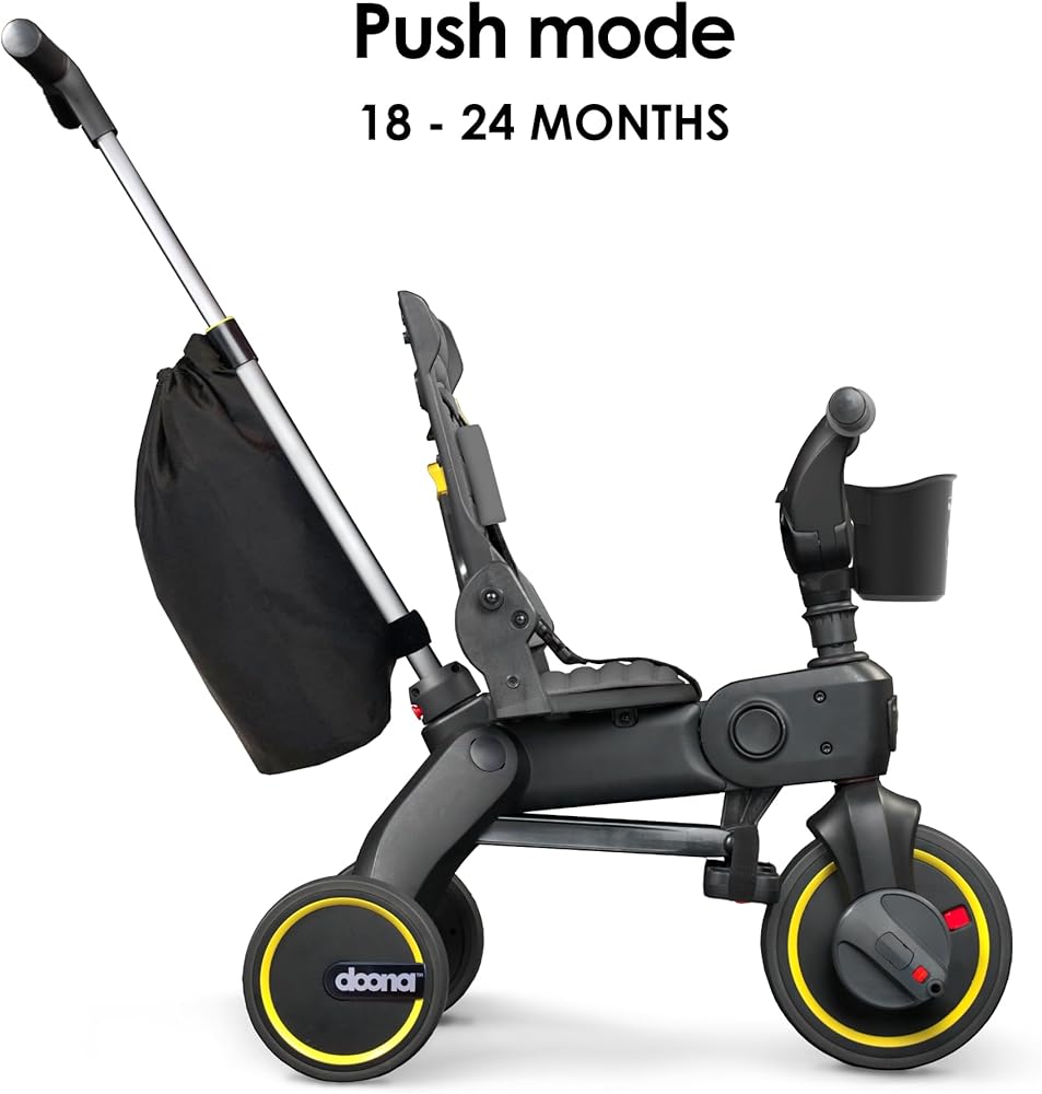 - WHAT’S INCLUDED :- The Doona Liki Trike S3 includes shoulder pads, a padded armrest, a 5-point harness, pedal straps, a cup holder, and a storage bag.