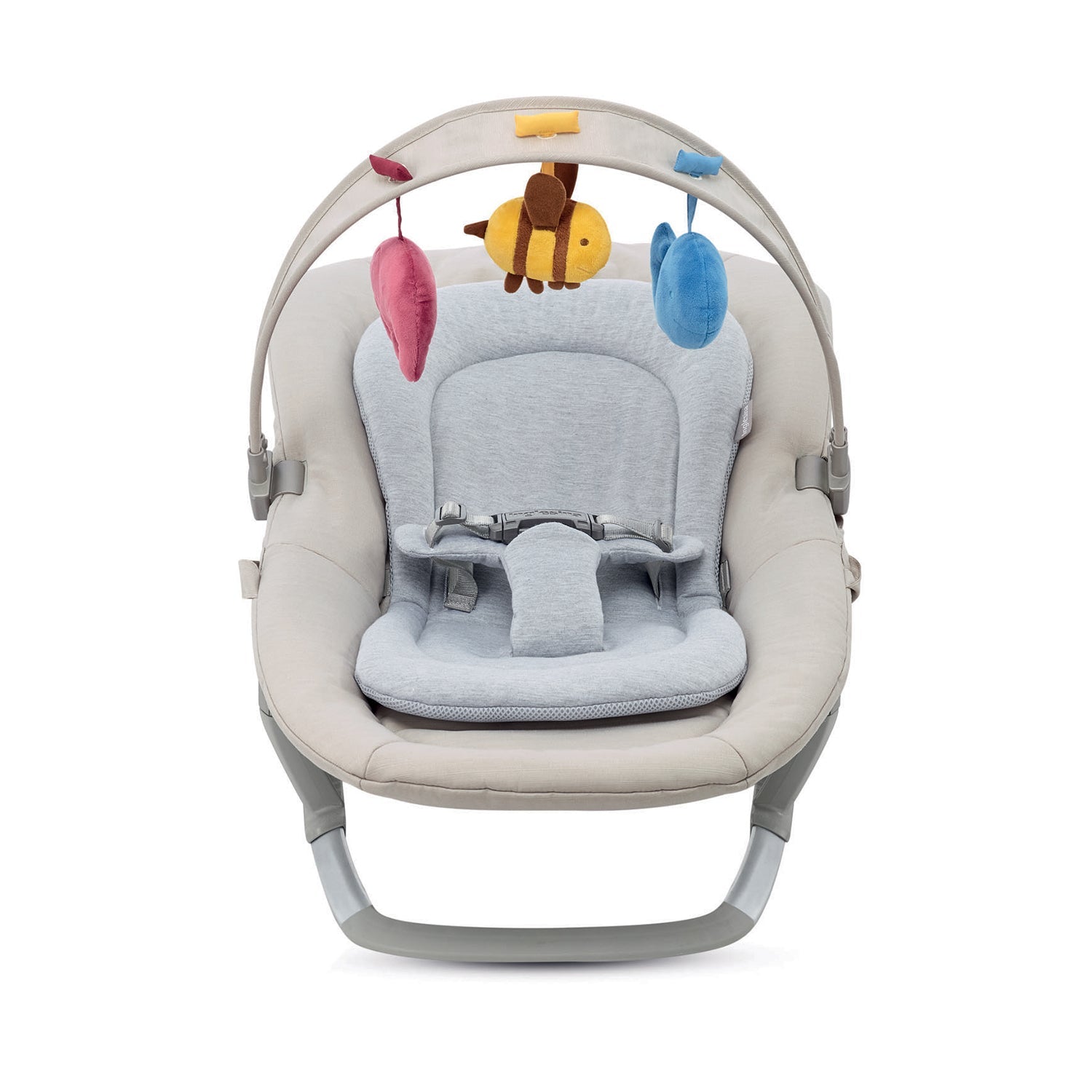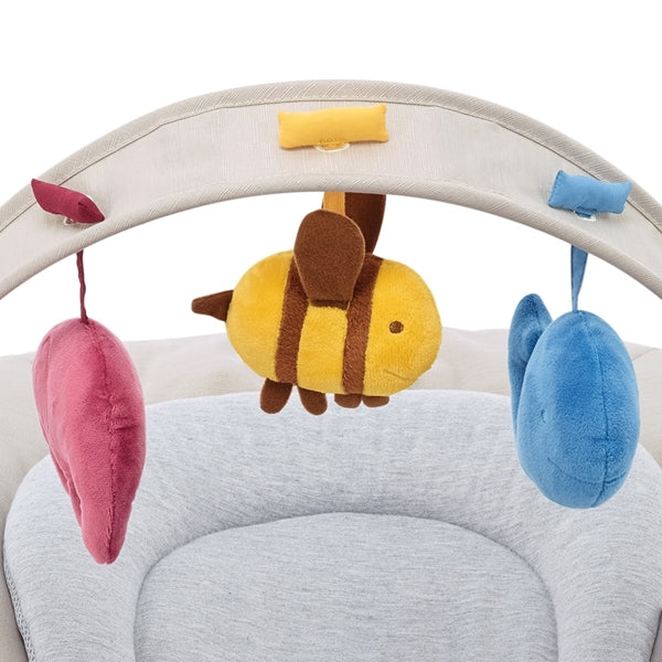 The rocking chair is light and practical to carry thanks to the side handles. In addition, the toy bar can be hooked in various positions, so the soft puppets are within easy reach of your little one.